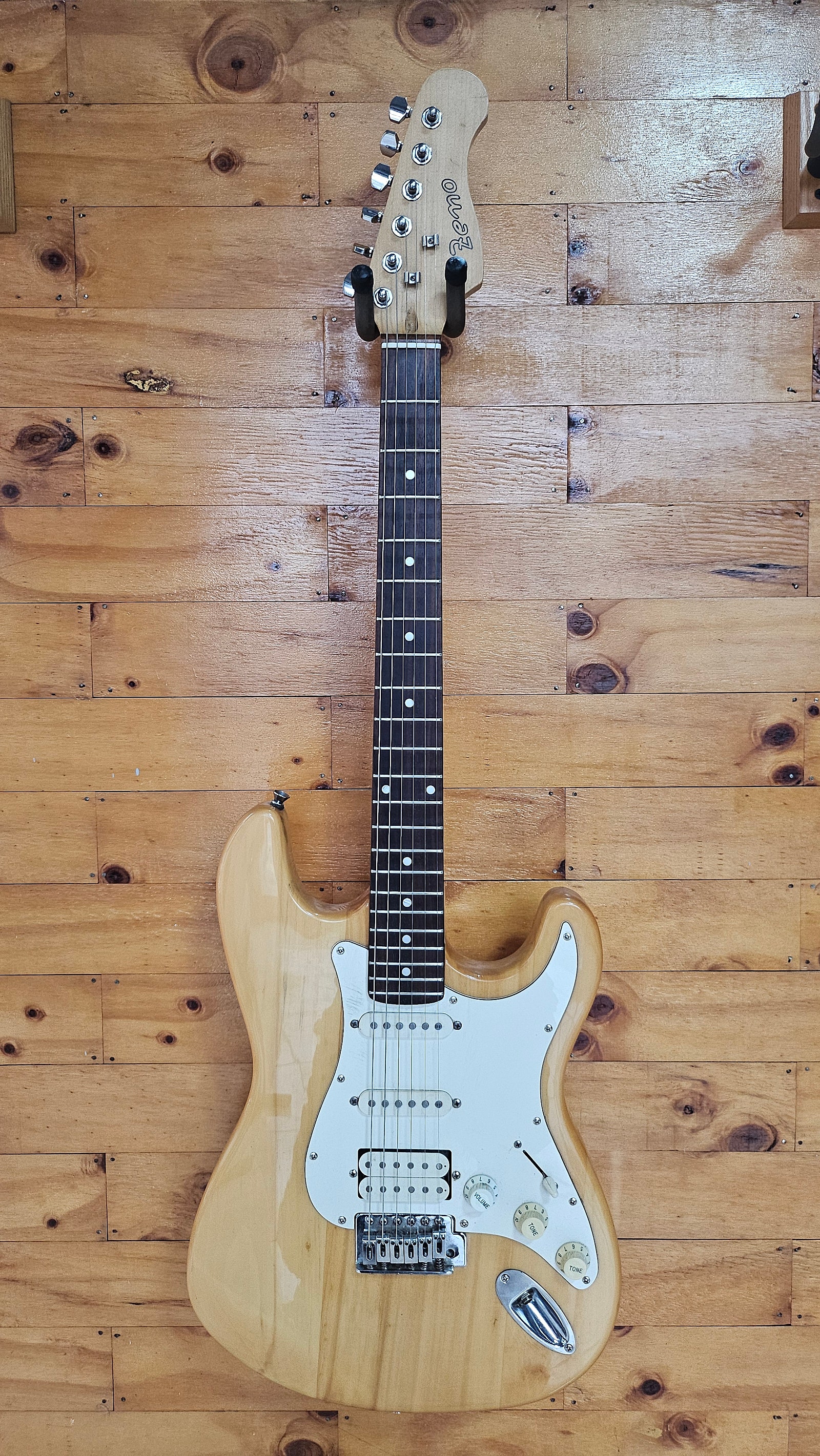 제노 스트렛 일렉기타 입니다. 전체적으로 사용감, 스크레치, 덴트, 미세크렉 등 있지만 양호한 외관을 유지하고 있으며 넥상태, 줄높이 좋습니다. 원목바디, 싱 싱 험 픽업, 5단 셀렉터, 1볼륨 2톤이 장착되어 있어 다양한 음색연출이 가능합니다. 현재 009 스트링으로 세팅되어 있어 바로 사용 가능해 기타를 처음 배우시는 분의 입문용, 세컨용, 연습용 등 기타를 구매하시는 분들에게 권해드립니다.