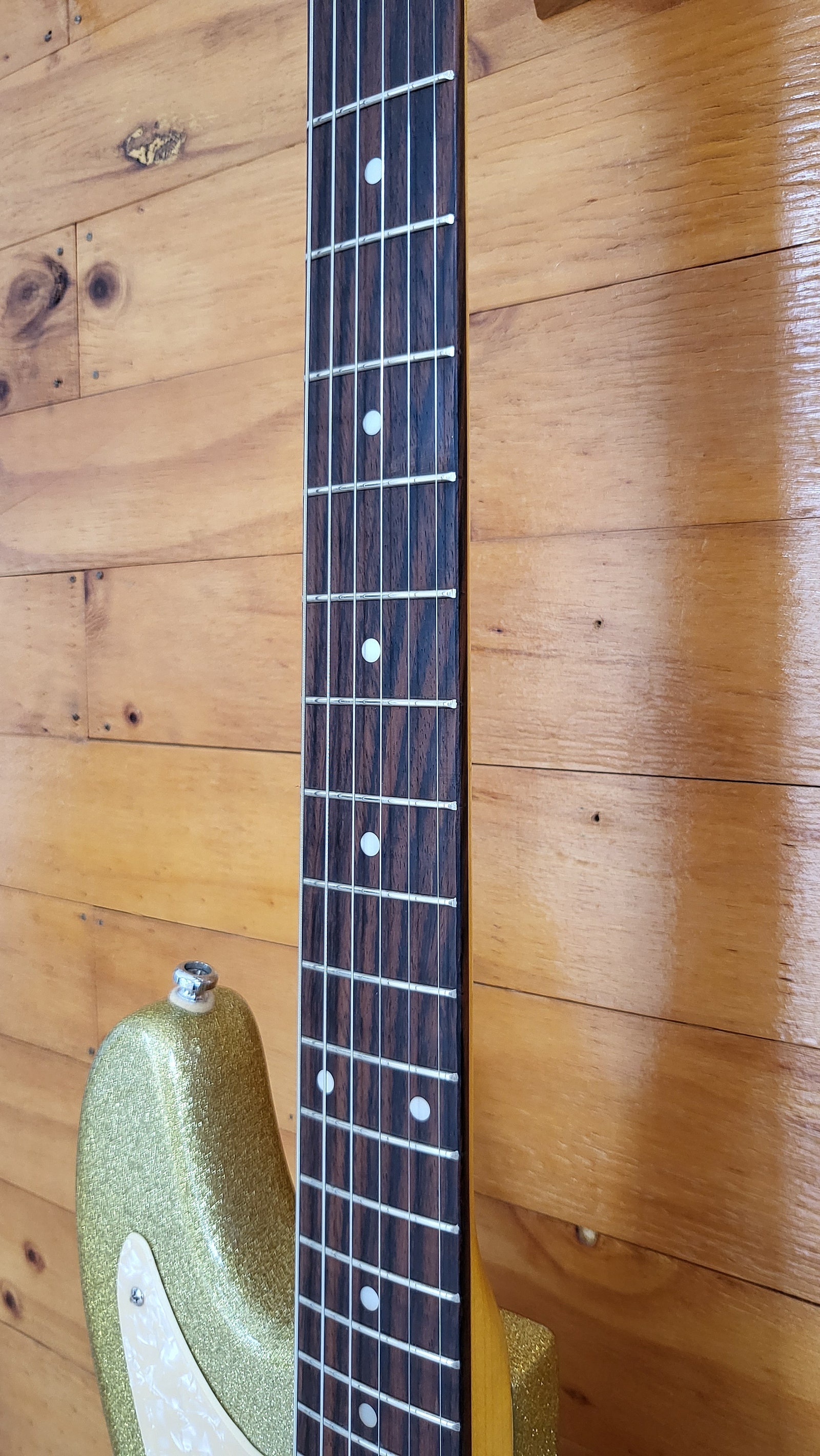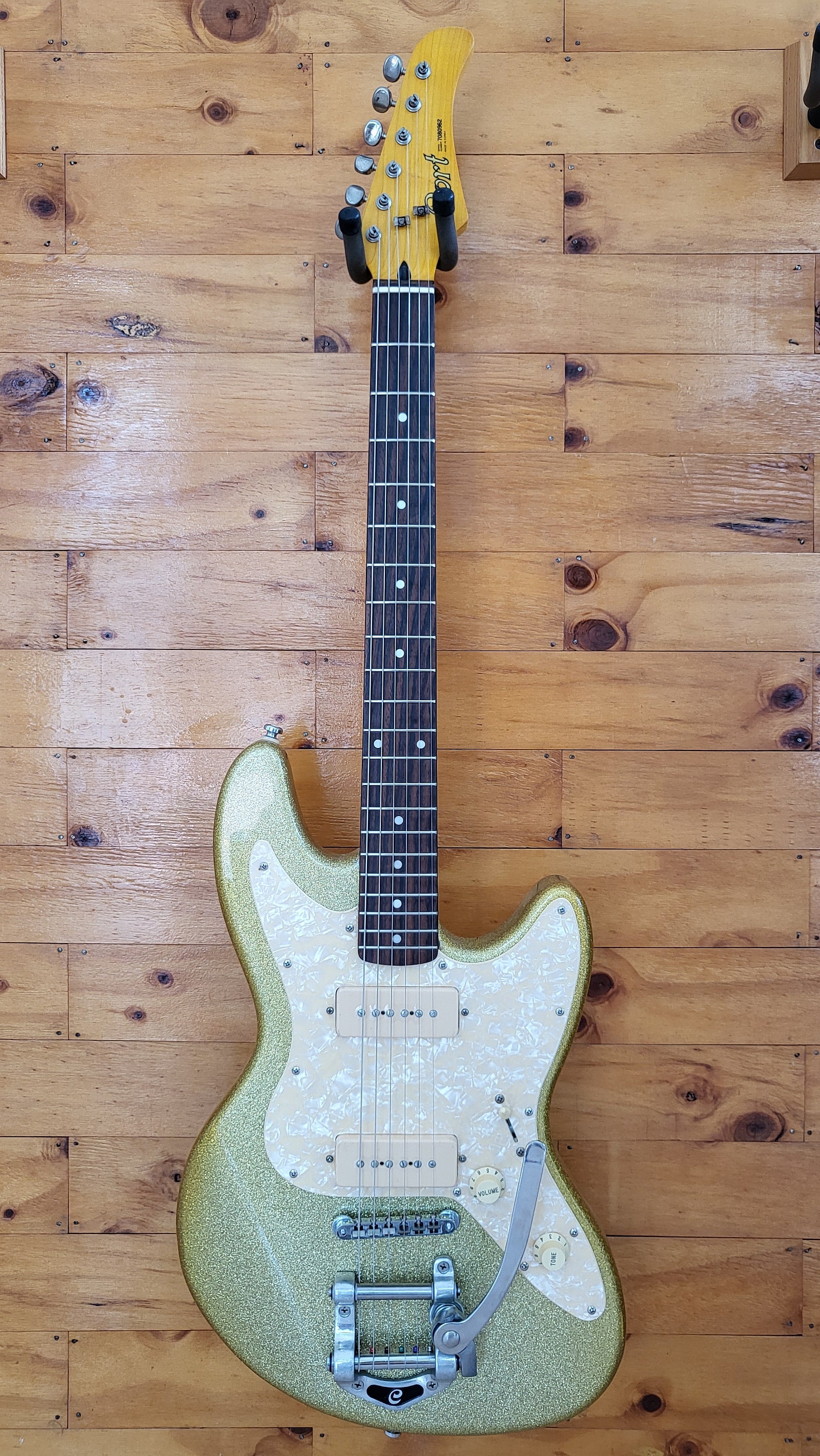 국내에서 생산한 콜트 스트렛 일렉기타 입니다. 전체적으로 사용감, 스크레치, 덴트 등 있지만 년식 대비 양호한 바디를 유지하고 있으며 넥상태, 줄높이 좋습니다. 원목 바디(엘더 추정)와 P90 픽업 1볼륨, 1톤 3단 셀렉터가 장착되어 있고 빅스비 브릿지가 장착되어 있어 비브라토 연주가 가능 합니다. 현재 009 스트링으로 세팅되어 있어 바로 사용가능해 P90 픽업 기타를 찾으시는 분께 권해드립니다.