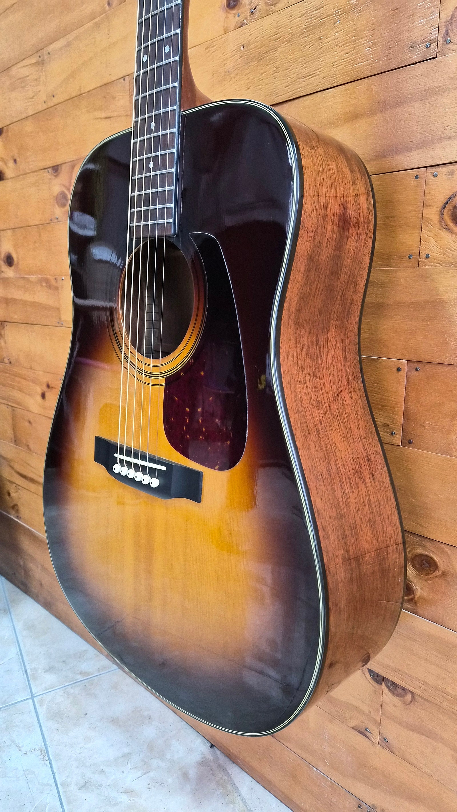국내에서 생산된 모리스 MD-508 드레드넛 통기타입니다. 전체적으로 사용감, 스크레치, 덴트, 크렉 수리 등 있지만 양호한 외관을 유지하고 있으며 넥상태, 줄높이 좋습니다. 90년대 국내 OEM모델 수출용으로 품질이 좋습니다. 드레드넛 사이즈 바디로 일반성인이 사용하기 좋습니다. 현재 012 스트링으로 세팅되어 있어 기타를 처음 배우시는 분의 입문용, 세컨용, 소장용, 소장용 등 기타를 구매하시는 분들에게 권해드립니다.