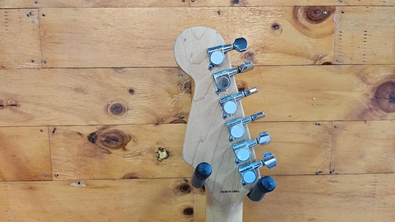 국내 브랜드 오봉 브랜드에서 판매하고 있는 벤처스 ST-11 스트렛 일렉기타 입니다. 전체적으로 사용감, 스크레치, 하드웨어녹, 덴트, 미세크렉 등 있지만 사용상 문제 없으며 넥상태 줄높이 좋습니다. 원목바디가 사용되었고 싱 싱 험 픽업, 1불륨, 2톤, 5단 셀렉터로 다양한 사운드 조절이 가능합니다. 현재 009 스트링으로 세팅되어 있어 바로 사용 가능해 기타를 처음배우시는 분의 입문용, 연습용, 새컨용 등 기타를 찾으시는 분께 권해드립니다.